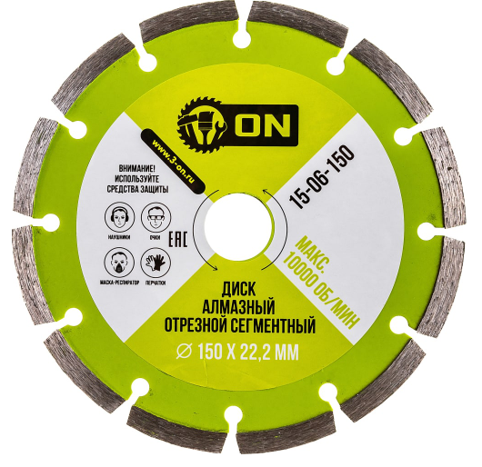 Диск алмаз."3-ON"150x22.2мм отрезной сегментный
