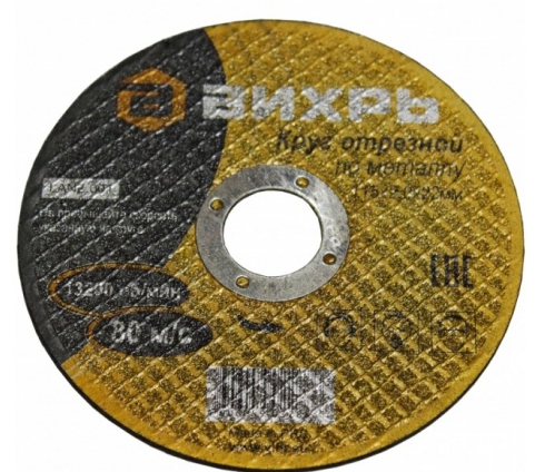 Круг отрезной Вихрь 115х2, 0х22мм применяется совместно с угловыми шлифовальными машинами (болгарками) для работ по металлическим заготовкам. Диск можно раскручивать до 13200 оборотов в минуту. Круг имеет высокий запас прочности и технологичную конструкцию.