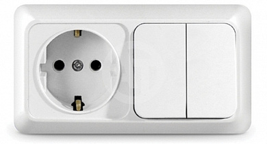 Блок UNIVERSAL "Олимп" розетка 16А + выключатель двуклавишный 10А белый с заземлением