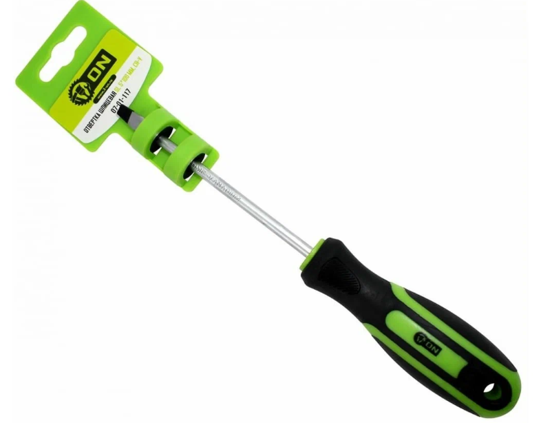Отвёртка шлицевая  SL5 100мм для монтажа и демонтажа резьбовых соединений. Стержень из хромованадиевой стали (CrV), полностью закален и имеет хромоникелевое покрытие. Наконечник намагничен. Рукоятка эргономичной формы с отверстием для подвески, изготовлена из противоскользящего материала - двухкомпонентного пластика. Длинный стержень обеспечивает доступ к заглубленному крепежу.