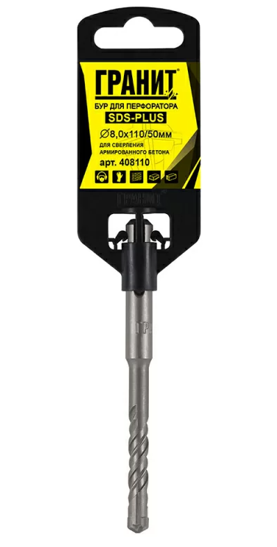 Бур ГРАНИТ "Quadro-X" по бетону для перфоратора SDS-Plus 8,0х110/50 мм