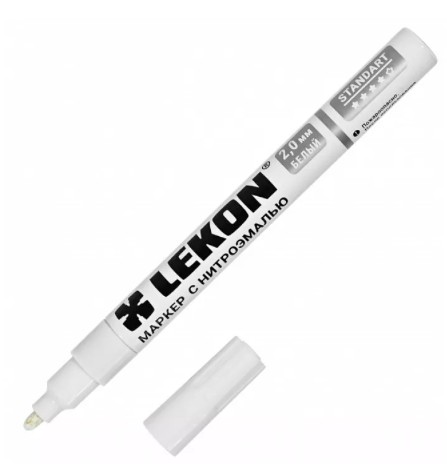 Маркер LEKON с нитроэмалью 2мм белый "Standart"(арт. 011902)