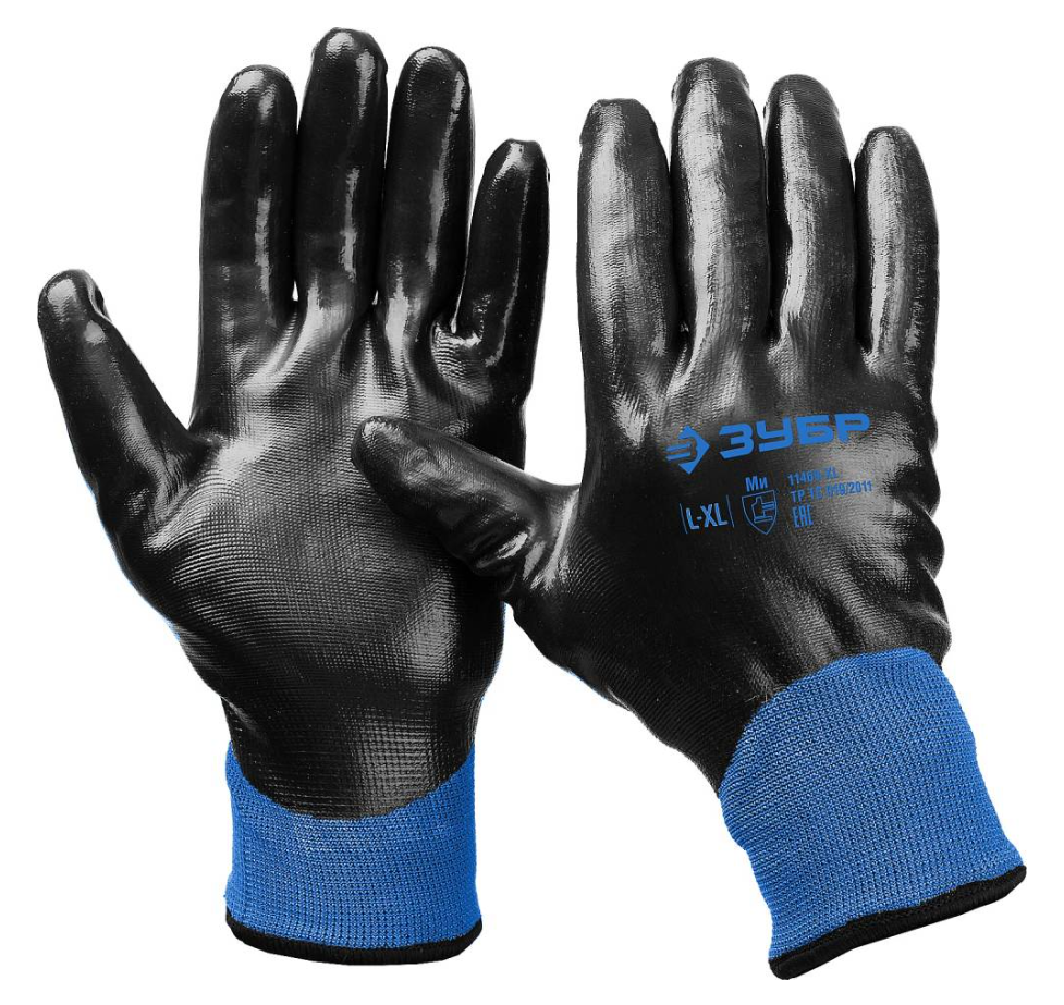 Перчатки ЗУБР "Арктика" утеплённые двухслойные с нитриловым обливом р. L-XL