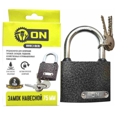 Замок навесной влагонепроницаемый 75мм чугун автоматическое запирание 3-ON