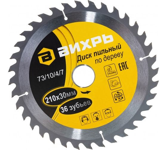 Диск пильный "ВИХРЬ" по дереву 210х30мм 36 зубьев