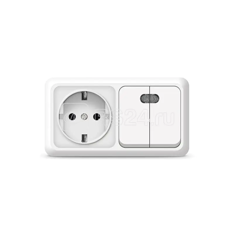 Блок объединяет двухклавишный выключатель и розетку.