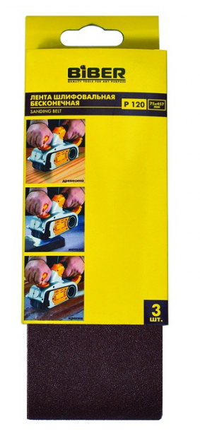 Лента шлиф. P40 75x533 мм BIBER бесконечная 3 шт.