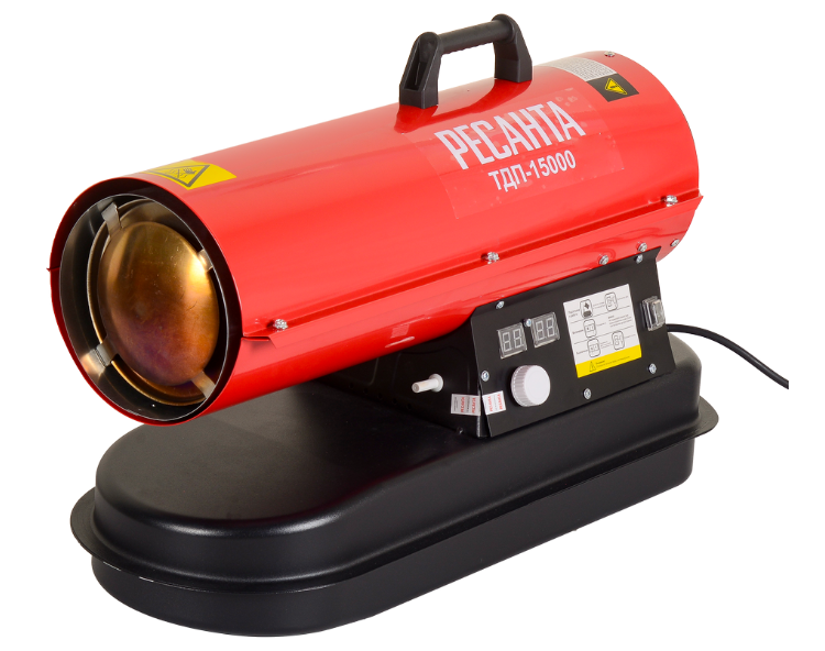 Дизельная тепловая пушка РЕСАНТА ТДП-15000 - функциональный обогреватель с прямым нагревом для отопления складских, строительных и других помещений.