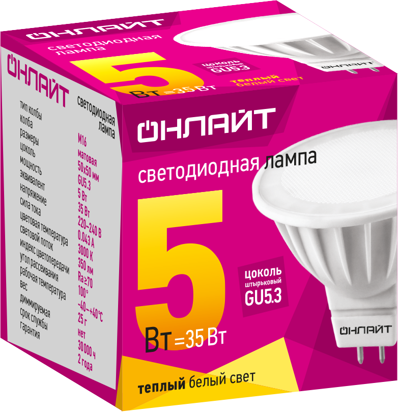 Лампа светодиодная ОНЛАЙТ М16 5Вт GU5.3