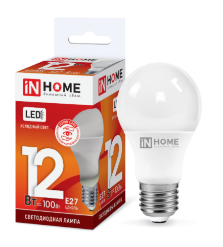 Лампа с/д IN HOME A60 груша 12Вт Е27 6500К 230В