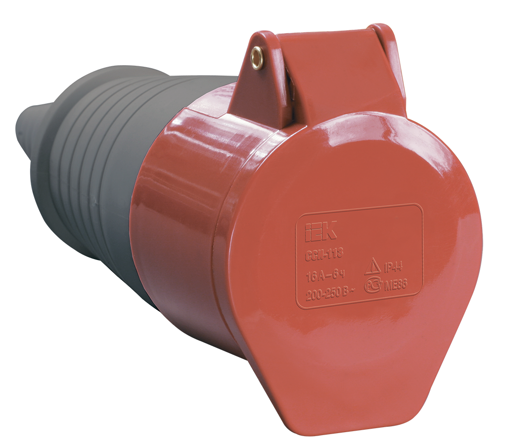 Розетка IEK ССИ-225 переносная с крышкой 32А 380В красная одноместная с заземлением