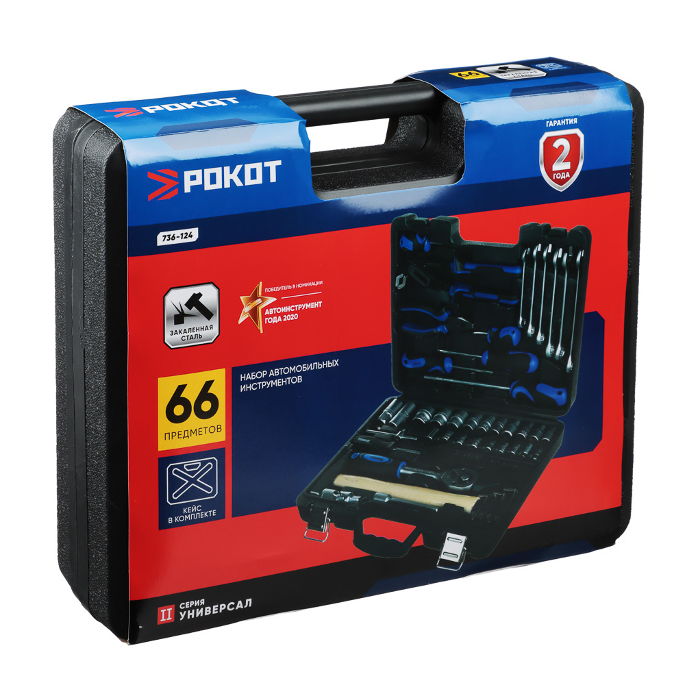 Набор автомобильных инструментов РОКОТ — надежный и практичный комплект, который предназначен для ремонта и обслуживания автомобиля. Он станет отличным подарком для мужчины на любой праздник. Предметы из набора изготовлены из хромованадиевой стали, отличающейся прочностью и устойчивостью к коррозии. Покрытие ручек обеспечивает удобный хват и максимальный комфорт во время использования. Набор комплектуется пластиковым кейсом для легкой транспортировки и компактного хранения.