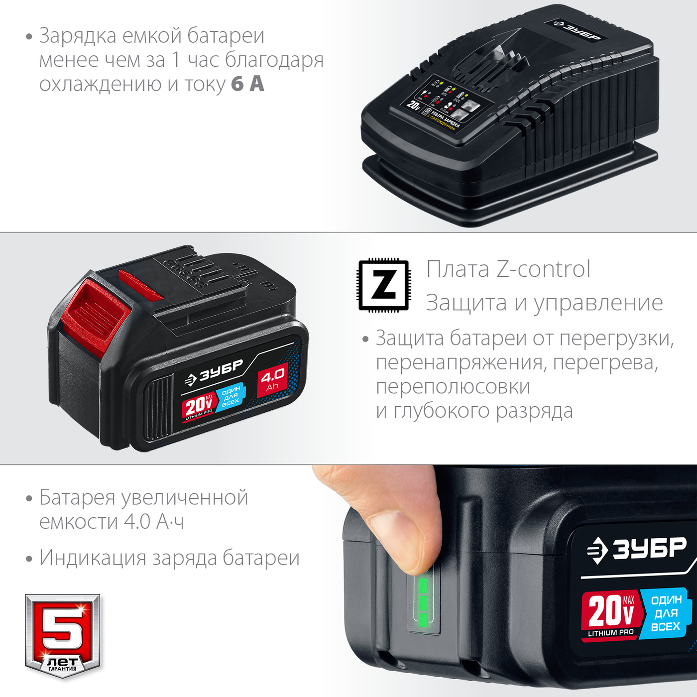 Плата управления батареи с технологией Z-control обеспечивает:
