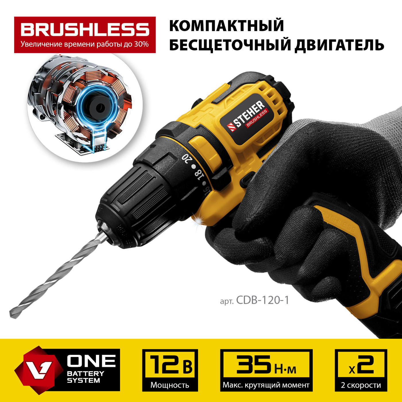 Высокий крутящий момент помогает выполнять работу быстро и эффективно