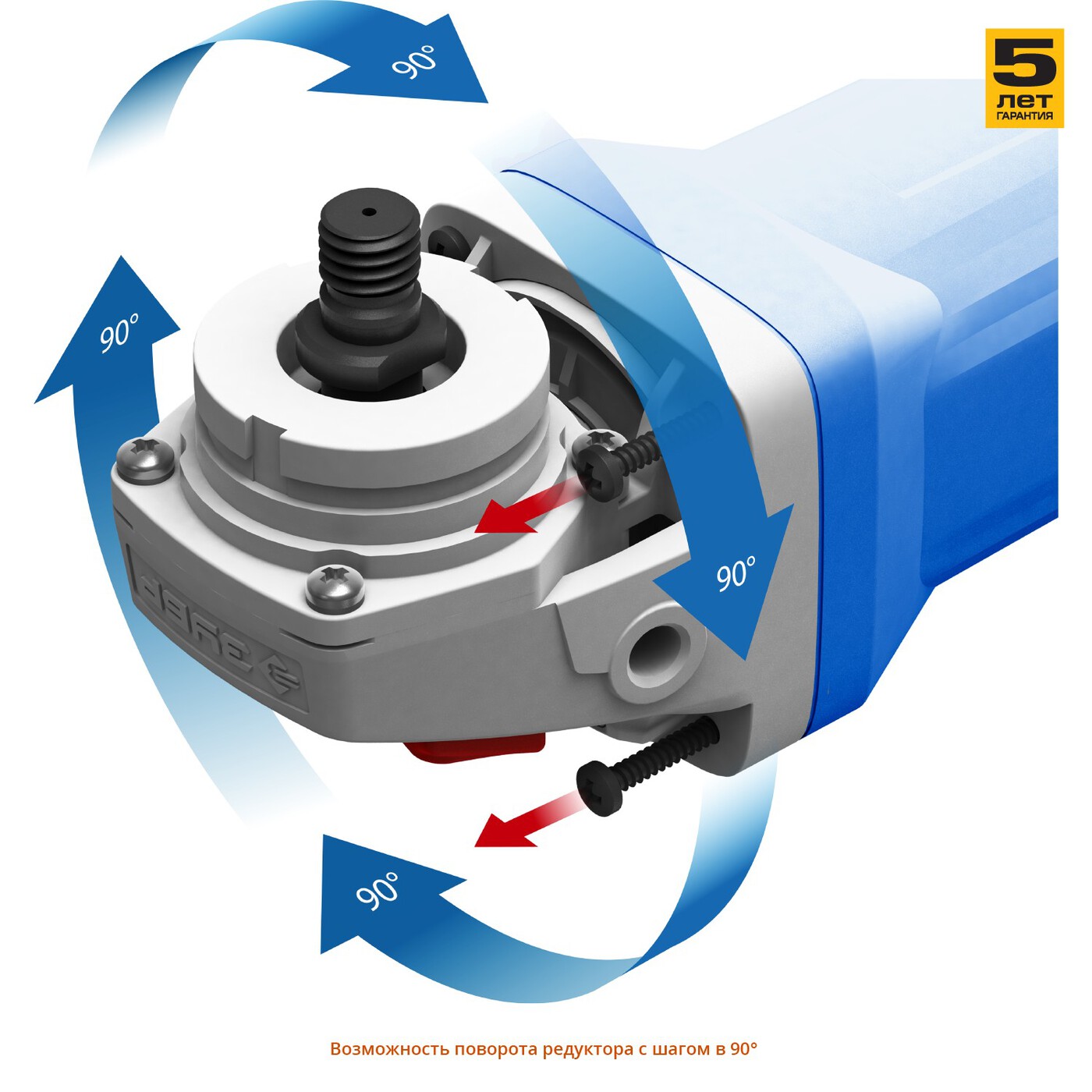 Поворотная с шагом 90° голова позволяет настроить изделие под левую руку или для резки