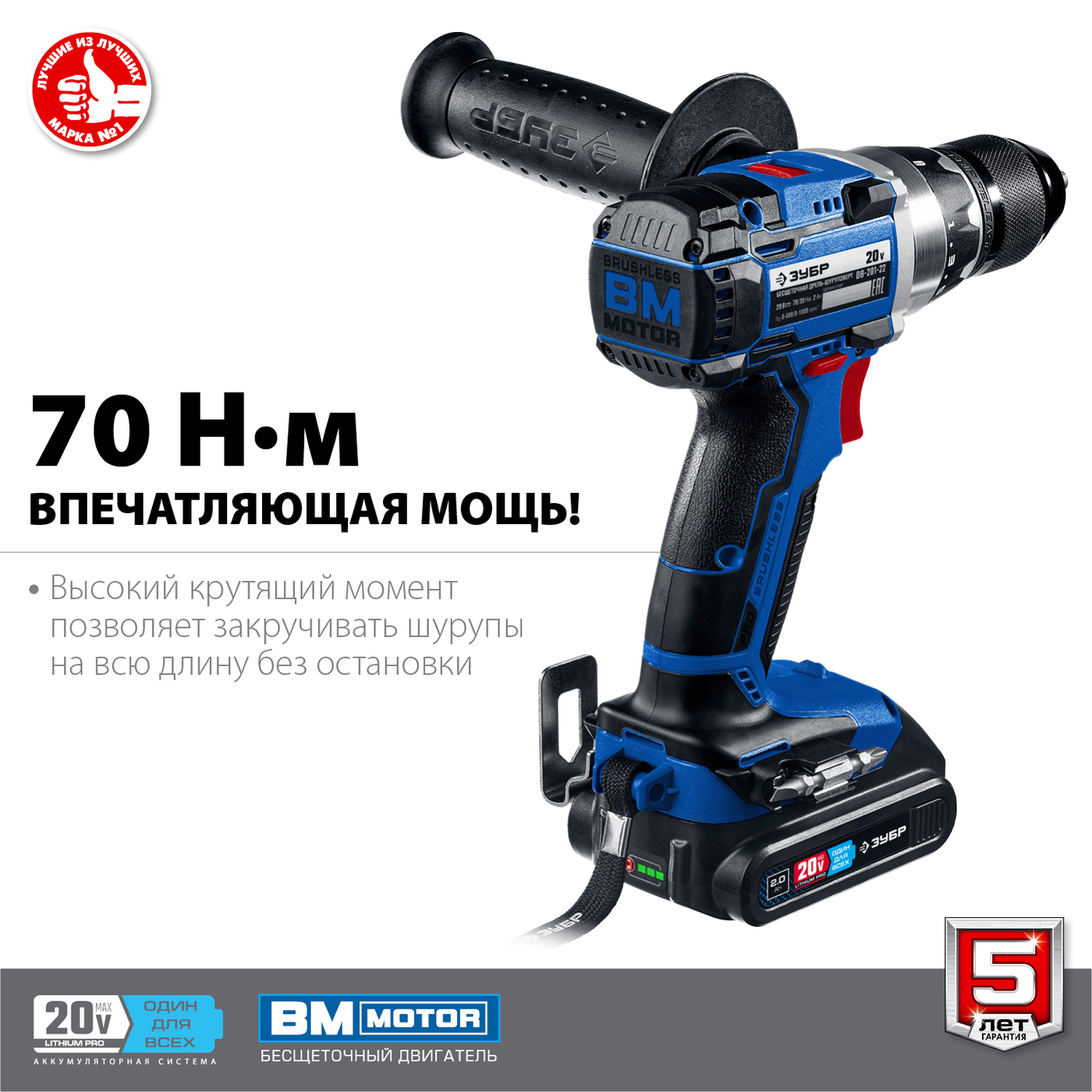 Высокотехнологичный шуруповерт профессионального уровня с передовым BRUSHLESS двигателем. Высокий крутящий момент 70 Нм, надежность конструкции и отличная эргономика позволяют выполнять практически любую работу - сверление дерева сверлом Левиса, сверление металла ступенчатым сверлом, заворачивание крепежа диаметром до 12 мм, перемешивание ЛКМ и прочее без усилий с Вашей стороны и перегрузки инструмента. Комплектация с двумя батареями и быстрозарядным устройством позволяет начать работу сразу после покупки