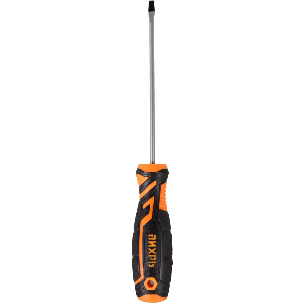 Отвёртка шлицевая ВИХРЬ SL3 100мм для монтажа и демонтажа резьбовых соединений. Стержень из хромованадиевой стали (CrV), полностью закален и имеет хромоникелевое покрытие. Наконечник намагничен. Рукоятка эргономичной формы с отверстием для подвески, изготовлена из противоскользящего материала - двухкомпонентного пластика. Длинный стержень обеспечивает доступ к заглубленному крепежу.