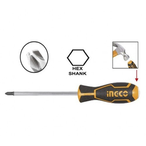 Ударная отвертка INGCO HGTSPH3150 с крестовым шлицем Phillips применяется для различных работ со сложным и тугим крепежом. Хвостовик шестигранной формы, выполненный из легированной стали, позволяет приложить к отвёртке дополнительное усилие с помощью гаечного ключа, многократно увеличив крутящий момент.