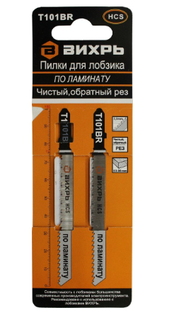 Пилки для лобзика ВИХРЬ Т101ВR по ламинату чистый, обратный рез 2 шт.