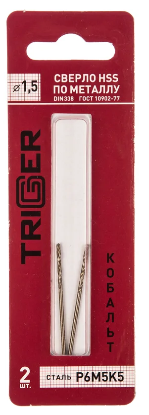 Сверло TRIGGER 1,5мм по мет."Кобальт"Р6М5К5 шлифованное 2шт.