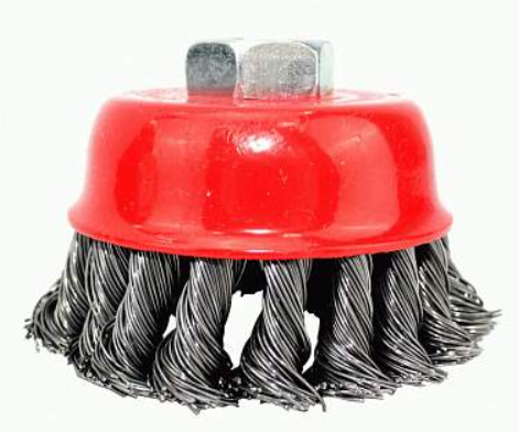 это насадка для угловой шлифовальной машины, которая применяется для грубой очистки любых металлических поверхностей, пазов и выемок от ржавчины, остатков краски, грязи, а также для зачистки сварных швов. Рабочая часть выполнена из крученой стальной проволоки повышенной прочности, устойчивой к износу и не подверженной коррозии, поэтому изделие рассчитано на длительный срок эксплуатации.