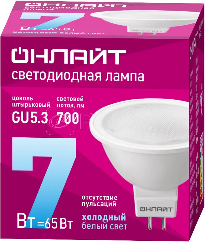 Лампа с/д OLL-MR16-7-230-6.5K-GU5.3 7Вт холодный свет