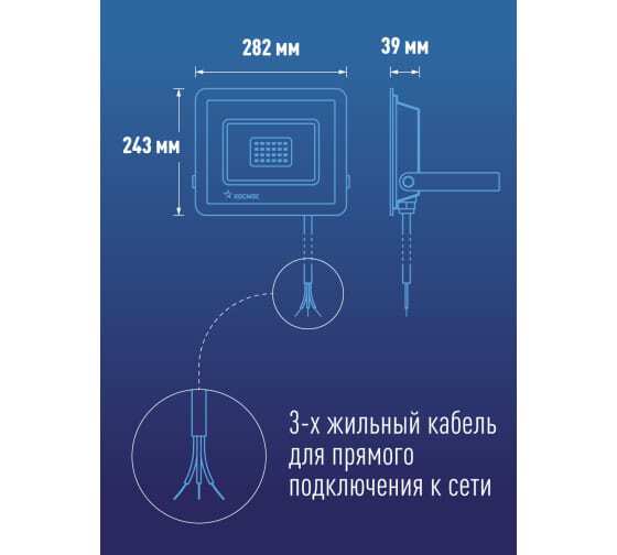 Прожектор светодиодный КОСМОС для наружного освещения, световой поток 16000лм, потребляемая мощность 200Вт, цветовая температура-6500К, диапазон рабочих температур от минус 45 до плюс 45 градусов, срок службы 40 000ч., степень защиты IP65.