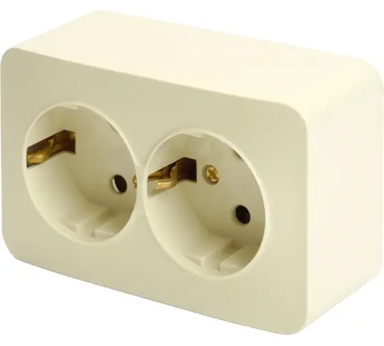 Розетка STEKKER  на 2 гнезда, с заземлением. Материал: ABS пластик. Номинальное напряжение 250, номинальный ток 16А.