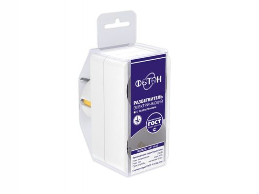 Разветвитель ФОТОН АМ 16-2Е 16А 220В белый двухместный с заземлением