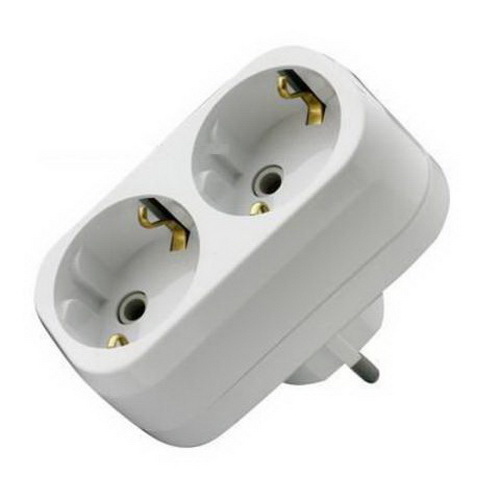 Разветвитель UNIVERSAL 16А 220В плоский белый двухместный без заземления