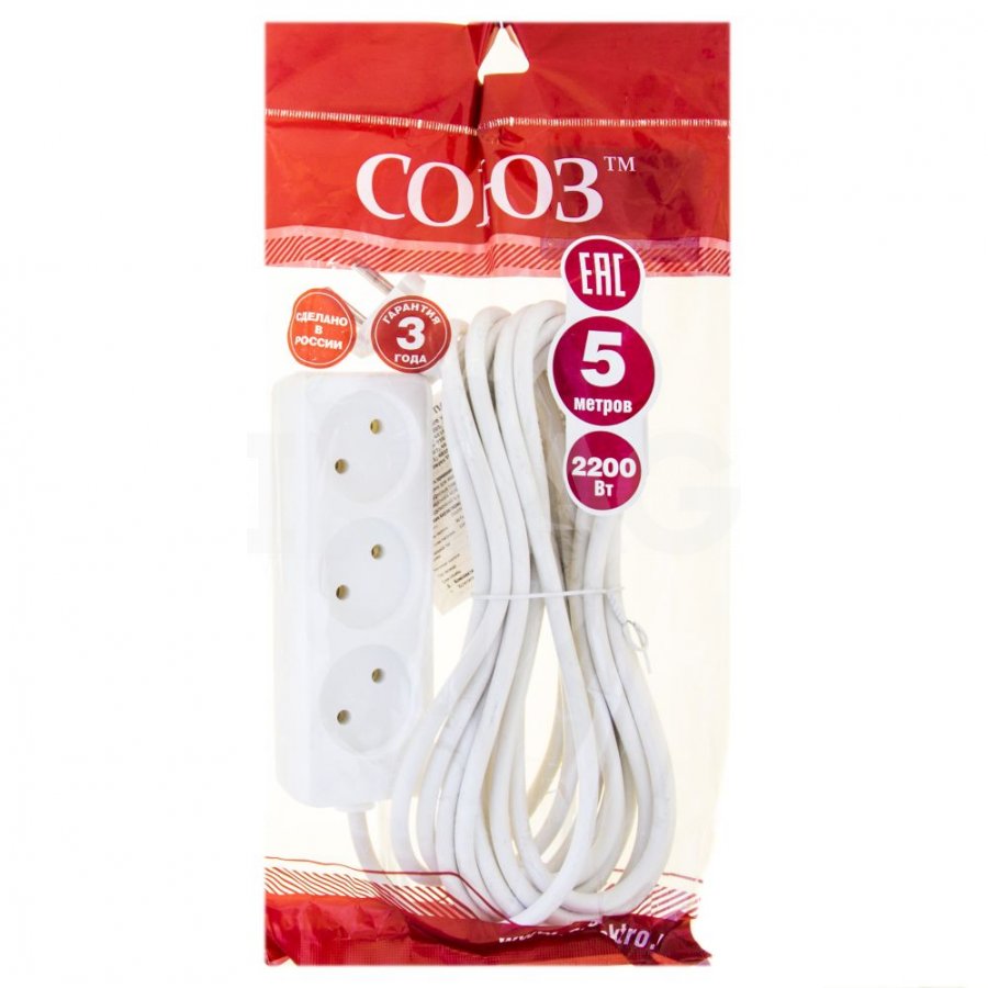 Удлинитель СОЮЗ 16А 5м белый трехместный б/з