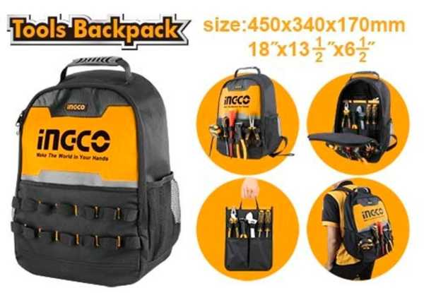 Рюкзак для инструментов INGCO HBP0101 INDUSTRIAL изготовлен из прочного и долговечного полиэстера 600 D. Имеет множество карманов для размещения инструментов и принадлежностей. Съемный вкладыш можно использовать и перемещать отдельно от рюкзака. Предусмотрена мягкая спинка для комфортной транспортировки. Благодаря износостойким нижним накладкам поверхность рюкзака более устойчива к повреждениям.