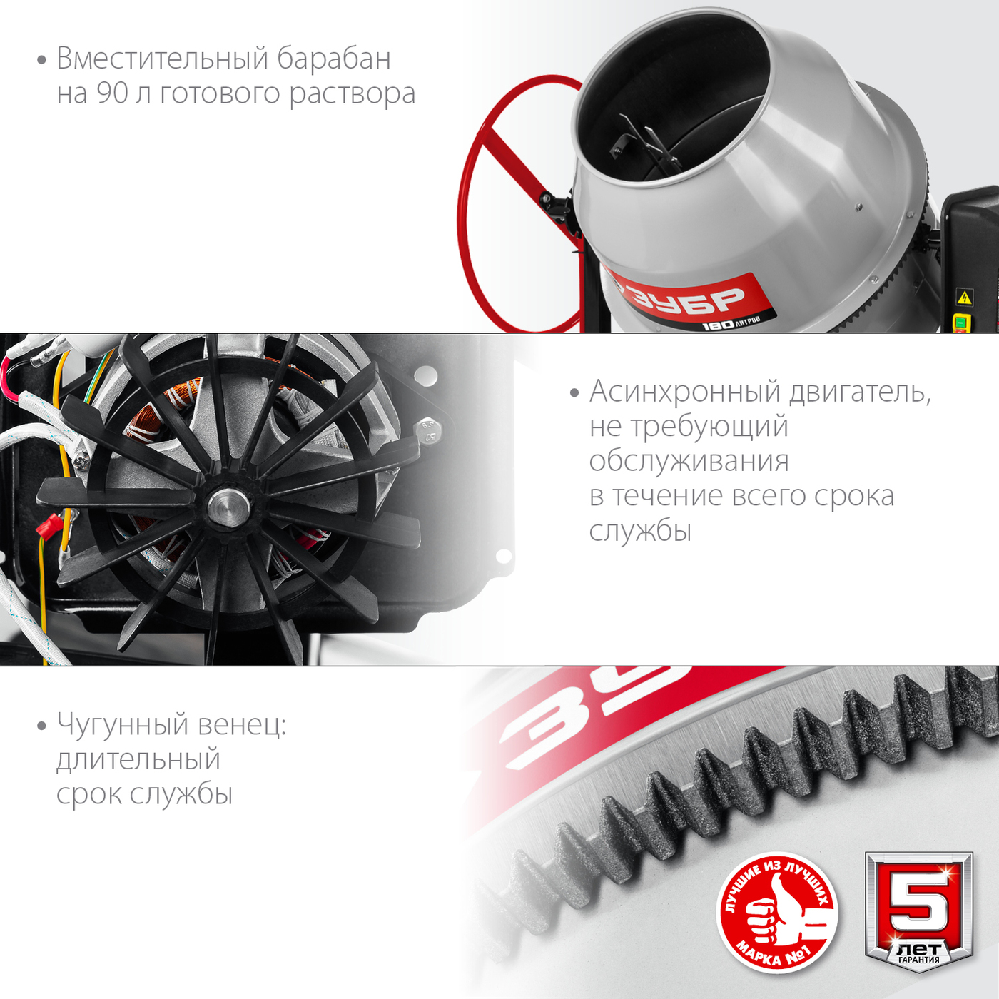 Эффективный инструмент , вместительным барабаном, удобным регулятором угла наклона барабана и надежным чугунным венцом в передаче является незаменимым помощником в строительных работах в быту и на стройплощадке. Сделано в России.