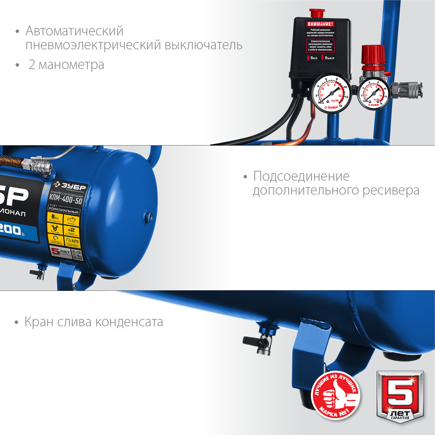 Грамотное сочетание новых технологий и проверенных временем конструкционных решений, которое найдет свое применение в мастерской, на производстве и в строительстве. Серия «Профессионал» отличается увеличенным ресурсомвозможность подключения двух инструментов, раздельно регулировать расход воздуха через каждый и автоматический режим работы изделия. Высокая производительность, возможность подключения двух инструментов, раздельная регулировка расхода воздуха через каждый позволяет подключать большой ассортимент пневмоинструмента. При правильной эксплуатации в соответствии с рекомендациями производителя ресурс данных компрессоров составит не менее 4000 часов*. * на основании результатов испытаний лаборатории компании АО «ЗУБР ОВК»