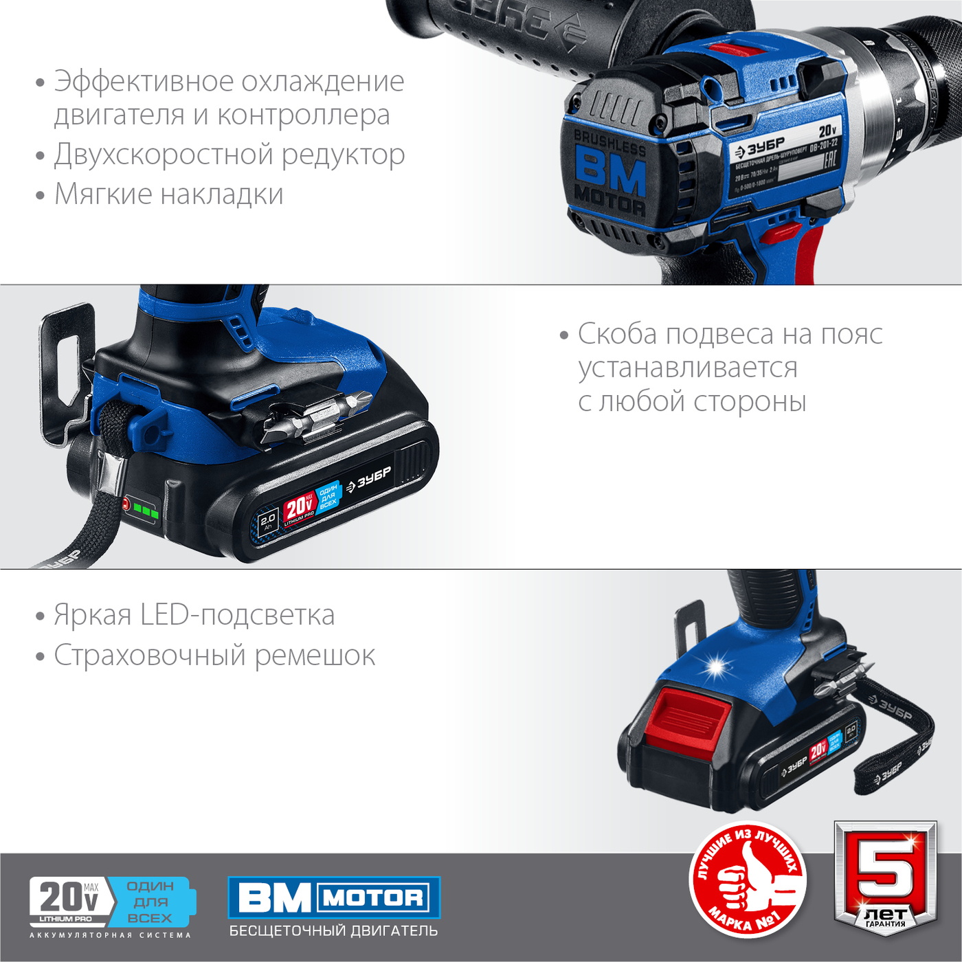 Высокотехнологичный шуруповерт профессионального уровня с передовым BRUSHLESS двигателем. Высокий крутящий момент 70 Нм, надежность конструкции и отличная эргономика позволяют выполнять практически любую работу - сверление дерева сверлом Левиса, сверление металла ступенчатым сверлом, заворачивание крепежа диаметром до 12 мм, перемешивание ЛКМ и прочее без усилий с Вашей стороны и перегрузки инструмента. Комплектация с двумя батареями и быстрозарядным устройством позволяет начать работу сразу после покупки