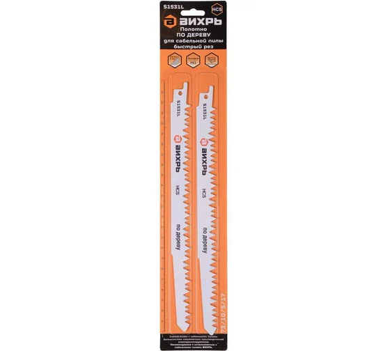 Полотно для сабельной пилы S1531L по дереву 240мм (2 шт) Вихрь 73/10/5/17