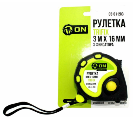 Рулетка ON "Trifix" обрезиненный корпус 3 фиксатора 3м х 16мм