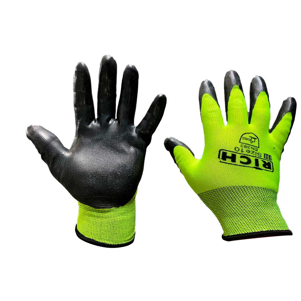 Перчатки RICH облитая ладонь нейл. Зелено-Черные